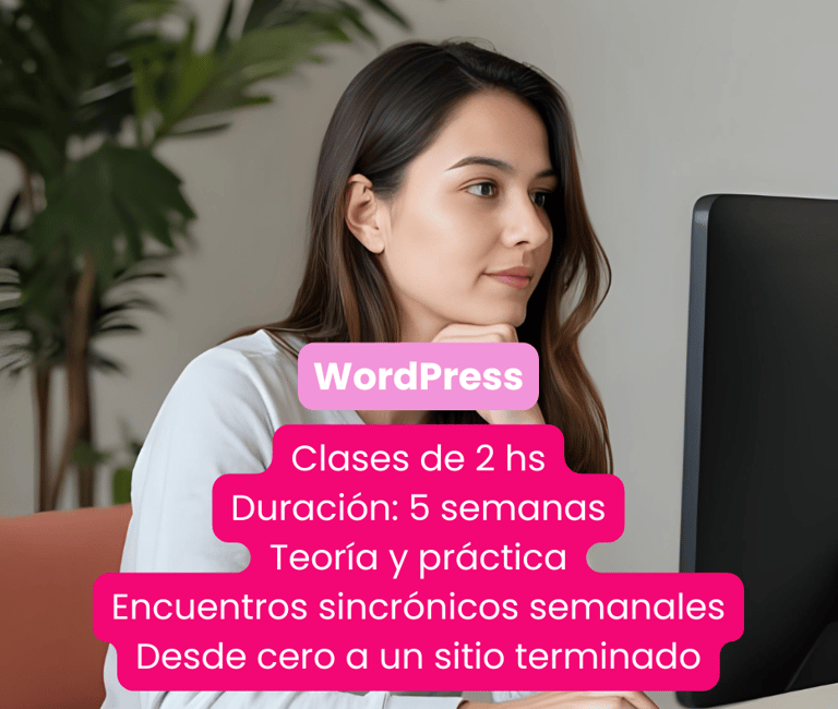 Con clases prácticas, material descargable y soporte, vas a terminar el curso con tu sitio web funcionando y listo para crecer.